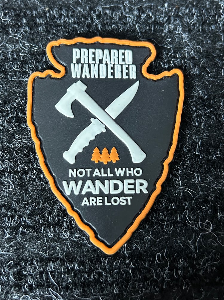 Vinyl 3D with Velcro backing. Designed by the Prepared Wanderer himself! Perfect for attaching to backpacks, pouches and caps.